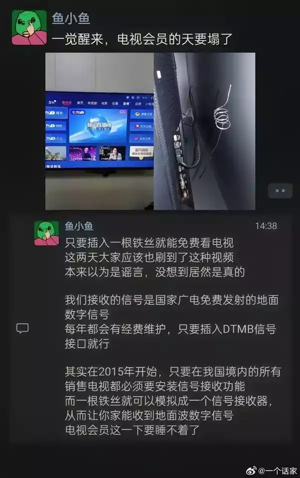在信息传播迅速的当下,各种新奇的话题总能瞬间抓住网友们的眼球。最近,“只要插入一根铁丝就能免费看电视” 这样一则看似神奇的话题,便在网络上引起了广泛的关注与热议。大家纷纷好奇,一根简单的铁丝真的能有如此大的魔力,让我们免费收看电视节目吗?