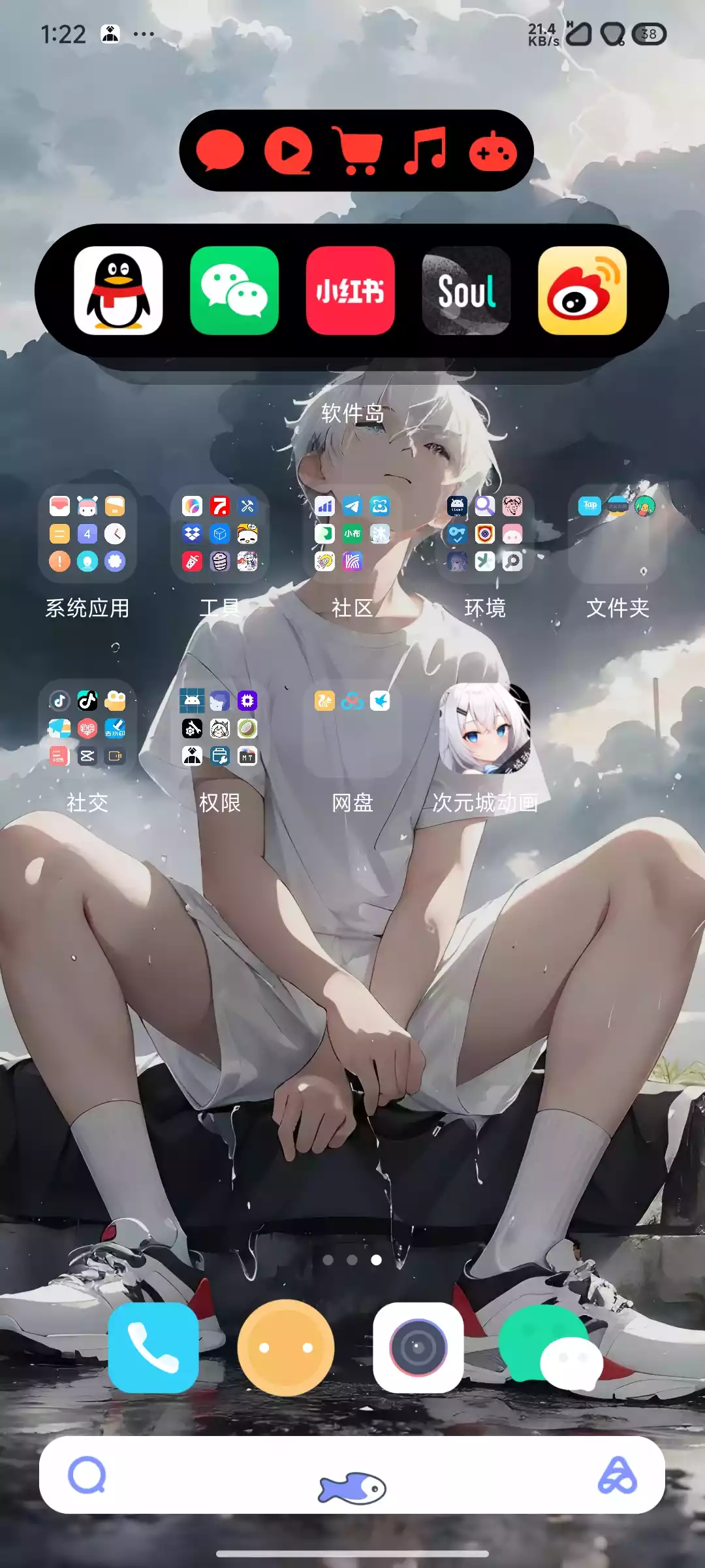 怎么说呢,我的新手机,因为刷入了 root, 体验了几天内核,但是突然就关机了,之后一直卡在 Redmi 界面,呜呜呜,好一个,没办法,只能重新刷入 root, 并且清楚全部数据,给你们看下我之间的桌面,超级好看的,我还没 搞完,有的东西还没弄,现在又要重新整了,得亏我有一刻相册,可以存我的照片,不限容量,并且小米有自动回复,备份的功能!很不错,白嫖的 50G 就是爽!!哈哈哈!
