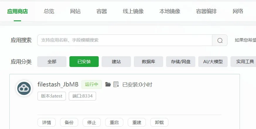 2. 宝塔面板搜索 filestash